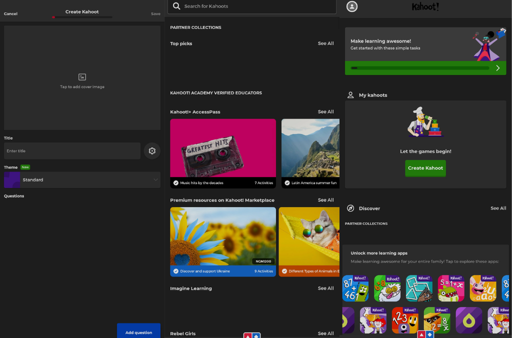 Kahoot plays almost like a trivia game with multiple choice questions that you create based on whatever material you want. You can even include videos, images, or diagrams in your questions.