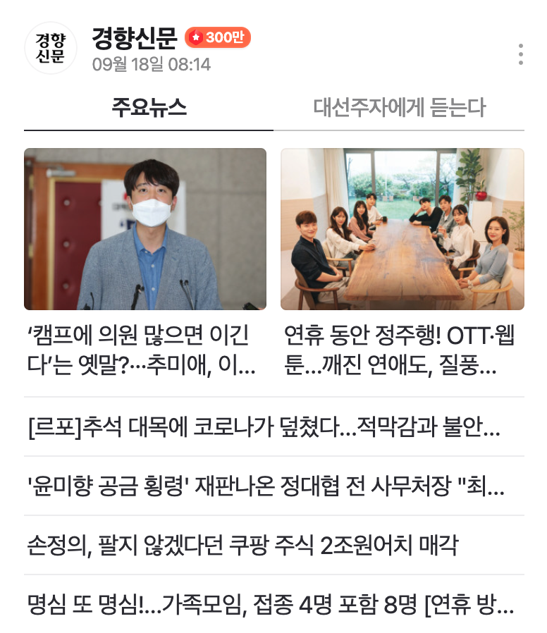 추석 연휴가 시작되었다. 다음 주 수요일까지가 공식적인 휴일이니까 5일간의 긴 휴일이 시작되었다. 코로나 이전이었다면 이틀 더 휴가를 내고 해외여행을 가는 사람들로 공항이 붐볐을 텐데, 긴 연휴에도 불구하고 이런 뉴스는 없다. 백신 접종률은 많이 높아졌는데, 코로나는 여전히 기승을 부리고 있는 명절 연휴 첫날의 '오늘의 뉴스'를 살펴본다.